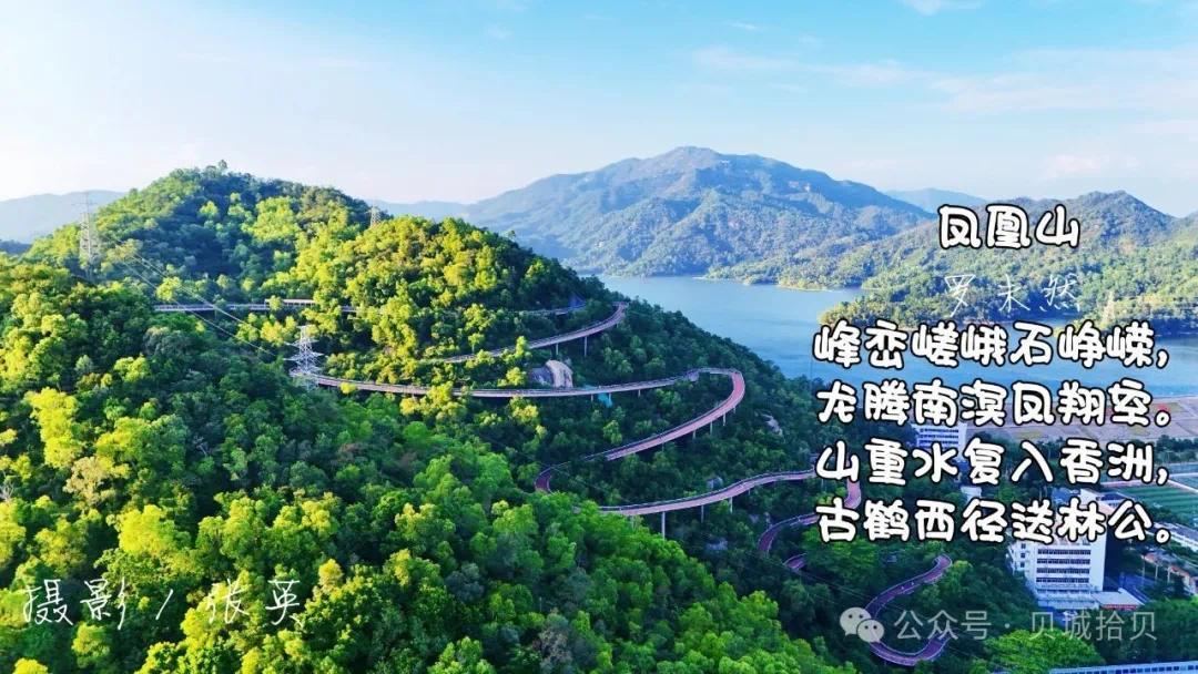 涵文脉祥瑞,负特区风云,凤凰山卓立碧浪云霞间,振羽似欲飞。石骨崚嶒,如潜龙破雾而出;翠岫横波,若彩凤梳翎以嬉。刚柔相济处,山骨与云衣相逐;山重水复时,香洲新绿凝露欲滴。石缝渗旧韵,文脉浸润的岁声暗涌;枝叶漏新曦,特区生长的晨曦初绽——此山藏双重韵致,旧岁与新城在此相衔。